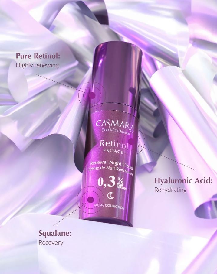 Thuộc bộ sưu tập Beauty Plan Premium – Facial Collection, CASMARA Retinol Proage Renewal Night Cream là kem dưỡng ban đêm chứa Retinol tinh khiết 0.15% và 0.30%, được phát triển nhằm hỗ trợ tái tạo da, cải thiện nếp nhăn và tăng cường độ săn chắc.