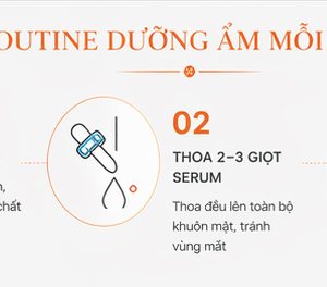 - Lấy khoảng 2–3 giọt serum, thoa đều lên da