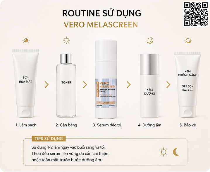 - Thoa serum 1–2 lần/ngày (sáng và tối)