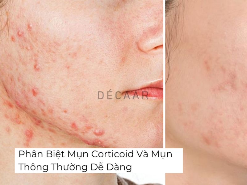 Kiến thức làm đẹp – Decaar Việt Nam https://decaarvietnam.vn Tue, 23 Sep 2025 09:24:57 +0000 vi hourly 1 https://wordpress.org/?v=6.8.2 https://decaarvietnam.vn/wp-content/uploads/2022/05/cropped-decaar-logo-bg-black-small-32x32.png Kiến thức làm đẹp – Decaar Việt Nam https://decaarvietnam.vn 32 32 Phân Biệt Mụn Corticoid Và Mụn Thông Thường Dễ Dàng https://decaarvietnam.vn/phan-biet-mun-corticoid-va-mun-thong-thuong-de-dang/ https://decaarvietnam.vn/phan-biet-mun-corticoid-va-mun-thong-thuong-de-dang/#respond Tue, 23 Sep 2025 02:50:33 +0000 https://decaarvietnam.vn/?p=4548 Da nhiễm corticoid đang ngày càng trở thành vấn đề nhức nhối trong cộng đồng yêu làm đẹp, nhất là khi thị trường mỹ phẩm tràn lan những sản phẩm không rõ nguồn gốc. Một trong những dấu hiệu điển hình của tình trạng này là sự xuất hiện của mụn corticoid – loại mụn rất dễ nhầm lẫn với mụn trứng cá thông thường. Việc phân biệt chính xác giúp bạn tránh điều trị sai cách, gây tổn thương lâu dài cho da. Bài viết dưới đây sẽ hướng dẫn bạn cách nhận diện mụn corticoid và mụn thông thường, từ đó lựa chọn phương pháp xử lý an toàn và hiệu quả.