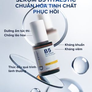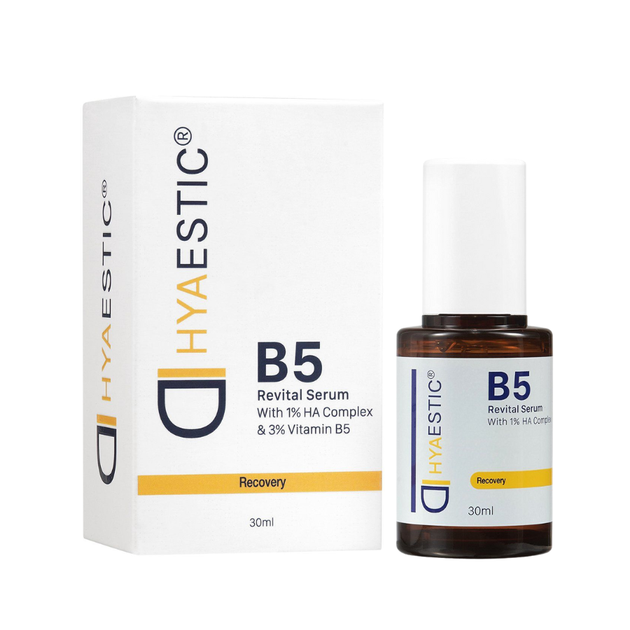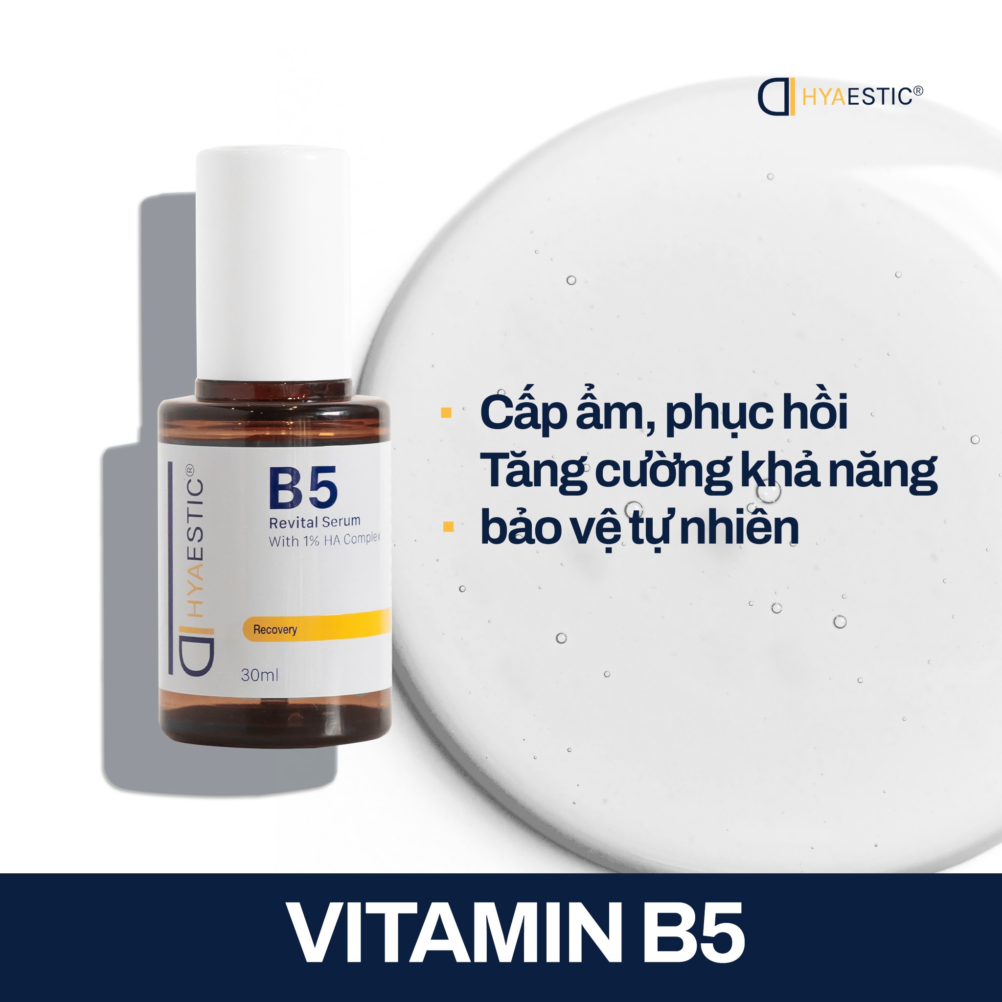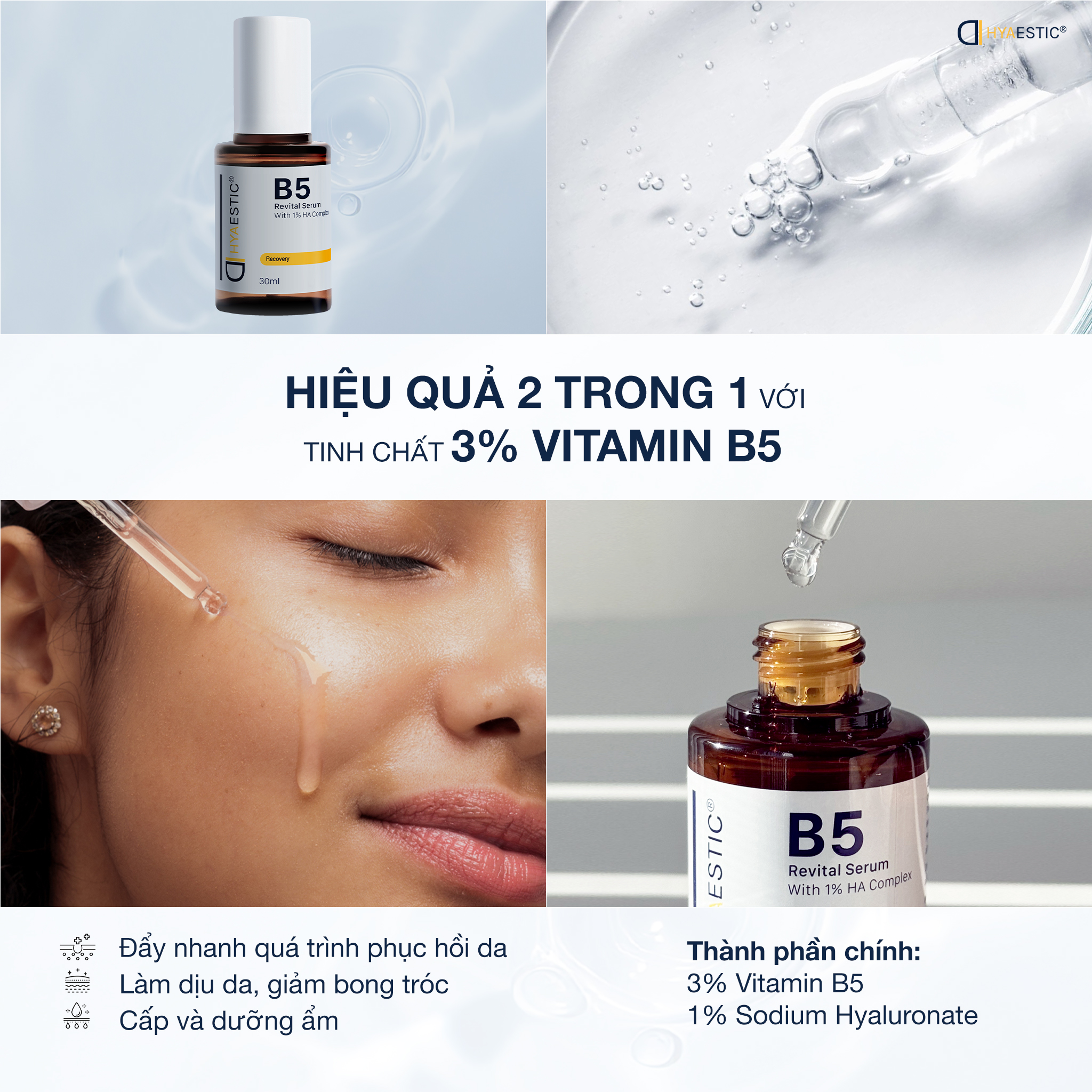 Hyaestic B5 Revital Serum là tinh chất phục hồi da chuyên sâu, được thiết kế như một “lá chắn sinh học” giúp tái tạo hàng rào bảo vệ da và duy trì độ ẩm bền vững. Với công thức kết hợp giữa Vitamin B5 nồng độ 3%, Glycerin 5% và HA Complex, sản phẩm mang lại hiệu quả vượt trội trong việc làm dịu, cấp ẩm và phục hồi làn da nhạy cảm hoặc tổn thương sau các liệu trình thẩm mỹ.